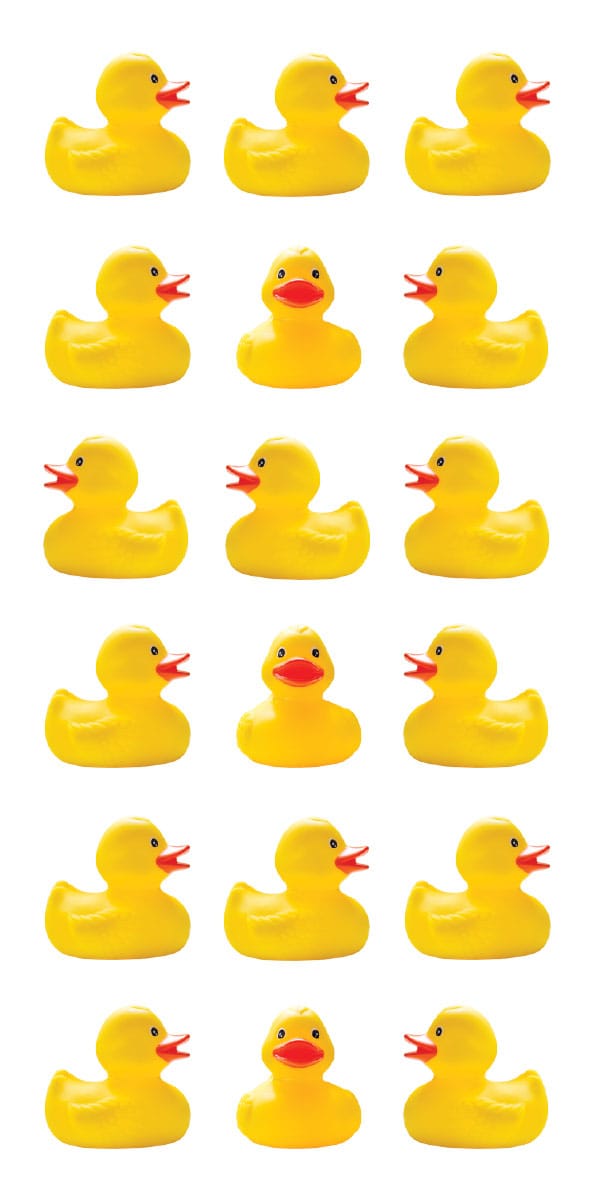 Fifty four yellow rubber duckies - that's what you get when you purchase this decorative sticker We just love them! Quack, quack.